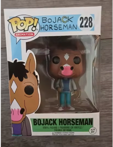 BoJack Horseman, the titular character from the animated Netflix series BoJack Horseman. This stylized collectible figure, produced by Funko, depicts BoJack in his signature attire, holding a mug.
